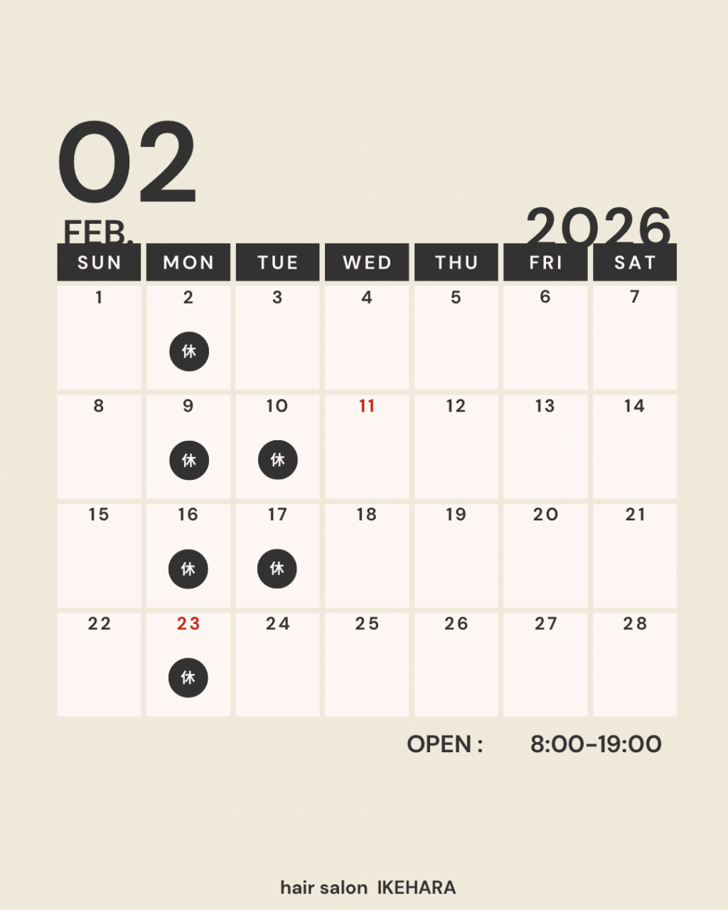 そんな2月の定休日は